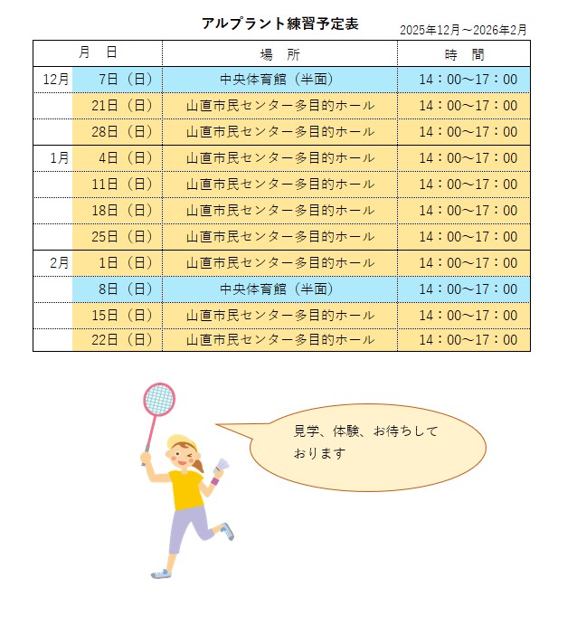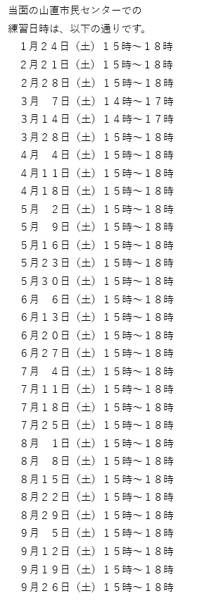 当面の練習予定日時は、▶に記載しています。